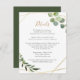 Projetado para coordenar com nossa coleção de casamento de Folhagens Mistas, este cartão de Detalhes personalizável apresenta uma moldura geométrica dourada adornada com folhagem de greenery em aquarela com texto em dourado e cinza. Para fazer alterações avançadas, selecione a opção "Clique para personalizar ainda mais" em Personalizar este modelo.