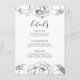 Cartão de informação de convidado de casamento: não se esqueça deste cartão útil com todos os seus importantes detalhes de casamento, como localização, alojamento, transporte, etc... Um elegante design de flores preto e branco com lindas peônias, perfeito para um casamento chic e moderno. Totalmente personalizável: você pode facilmente mudar a cor do texto ou das flores para se adequar ao seu gosto.