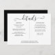 Um elegante cartão de informações de detalhes de casamento preto e branco personalizado com seus detalhes especiais em tipografia de na moda e seus nomes e data de casamento no verso. Projetado por Thisnotme©