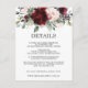 Projetado para coordenar com a nossa coleção de casamento Rustic Blush, este elegante bilhete de convidado de casamento / cartão de informação apresenta um belo burgundy de aquarela e floral de blush. Personalize-o com seus detalhes de forma fácil e rápida, basta pressionar o botão personalizar para reorganizar e formatar o estilo e a colocação do texto. c) O Feliz Cat Studio