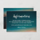 Cartão de modelo de informações de casamento elegante, onde você pode incluir seu site de casamento ou outros detalhes. O fundo é uma bela fotografia de um céu azul-turquesa escuro com uma galáxia de estrelas na frente e um nascer do sol sobre montanhas nas costas. Todo o texto é totalmente personalizável, em uma combinação na moda de fontes de script e sans serif.