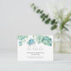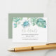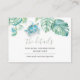 Concebido para combinar com a minha coleção de casamento na praia, este elegante cartão de detalhes para convidados apresenta uma borda superior com minhas folhas de palmeira monstera e tartaruga marinha em tons de azul, turquesa e verde. Abaixo estão os detalhes do seu site de casamento em um pequeno cartão de tamanho 3,5x2. Adicione seu texto personalizado usando os campos fornecidos e use a função Personalizar para ajustar fontes, tamanhos e espaçamento. Para ver designs correspondentes, visite DoTellABelle Invites no Zazzle