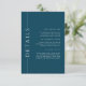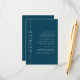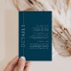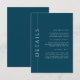Nosso modelo de cartão de detalhe de inserto de convite minimalista personalizável, apresentando uma paleta de cores azul escuro, perfeito para um casamento, bar ou bat mitzvah, chá de noiva, jantar de ensaio ou chá de bebê.