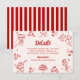 O conjunto That's Amore! Vermelho Italiano é uma celebração divertida e apaixonada do amor com um toque retrô. Esta coleção apresenta ilustrações ousadas em vermelho desenhadas à mão, inspiradas em tudo que é italiano - pense em taças de vinho, fatias de pizza, confetes e querubins - tudo isso contra um fundo suave de creme. O trabalho de linha caprichoso e o cartão de fundo listrado impressionante adicionam um toque festivo e divertido, perfeito para casais que desejam celebrar seu noivado ou casamento com personalidade e estilo. O conjunto é ideal para eventos que misturam romance com celebração alegre no verdadeiro estilo italiano.