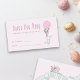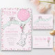 Jogo de adivinhação de chuvinha de bebê que você pode personalizar para o que quiser que seus convidados adivinhem, como Adivinhe Quantos coelhinhos de chocolate estão no pote. O design apresenta um coelhinho fofo segurando um balão rosa e um buquê de flores. Tipografia e ilustração caprichosas - perfeitas para chuvinha de bebê do coelhinho, chuvinha de bebê menina, tema de Páscoa de primavera ou verão feminino.