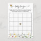 Para personalizações adicionais, entre em contato com hi.yellowmoonatelier@gmail.com. Adicione um toque divertido ao seu chá de bebê com este Cartão de Acompanhamento do Jogo de Bingo de Flores Silvestres da Pradaria, Abelhas e Borboletas da Yellow Moon Atelier. Com delicadas flores silvestres, abelhas zumbindo e borboletas adejando em tons suaves e ensolarados, este cartão complementa perfeitamente sua celebração com tema natural. Uma atividade divertida e envolvente para os convidados!