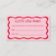 Cartão De Informações Jogo Retro Rosa Guess How Many Kisses