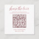 Blush e white compartilham as placas de código QR de amor. Coloque estas placas pequenas no seu mesa de recepção de casamento para que os convidados possam digitalizar para carregar as fotos que tiraram na sua recepção de casamento para o seu álbum ou mídia social. Para gerar um novo código QR no design, adicione o URL do seu álbum de casamento online ou identificador de mídia social na área fornecida, usando o recurso "personalizar". Um novo código QR de marca será então adicionado ao design.