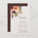 Este floral laranja burgundy | o cartão de eclosão de recepção de casamento bege é perfeito para o seu casamento rústico com borrão, verde escuro e jardim de ouro. Design apresenta uma coroa ou buquê de pêssego de cor d'água minimalista, rosa poeirento, roxo e rosas claro florais juntamente com cobre, verde, amarelo e verde cor de ferrugem. As flores nesta design são papoila, rosa e pedônia. O design é ideal para um simples e elegante primavera, verão ou casamento no outono. Por favor, encontre outra papelaria de casamento no resto desta coleção.