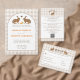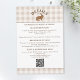 Cartão incluso no convite de casamento com fundo xadrez bege de Destei e um painel branco bordeado de marrom na parte superior e inferior para texto e código QR. No topo, uma ilustração caprichosa de uma lebre em aquarela é centralizada com um título curvo e personalizável acima que pode ler “Detalhes” ou qualquer título personalizado.