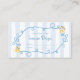 Adicione uma reviravolta à sua diversão de chá de fraldas com este cartão "Adivinha quantas gotas de limão"! Apresentando limões aquosos, arcos azuis em pó e listras azuis e brancas clássicas, esta carta é perfeita para convidar os hóspedes a adivinhar na sua celebração do tema mediterrânico.