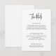 Este cartão de detalhes do casamento mantém as coisas claras e elegantes com um design preto e branco e um layout minimalista. As seções para transporte e acomodação são separadas, garantindo que seus convidados encontrem todas as informações essenciais que precisam para a celebração do seu casamento. Um endereço de site também é incluído para quaisquer detalhes adicionais.
