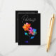 This “change the date” card from the Petals & Pride collection delivers the update with playful charm and radiant style. Set against a sleek black background, vibrant rainbow florals bloom in translucent layers of pink, orange, yellow, green, and blue—symbolizing love, pride, and resilience. Whether it’s a “plot twist,” “twist in plans,” or “sequel to our big day,” this card keeps spirits high while sharing the new wedding date. Perfect for LGBTQ+ couples who embrace joy and humor in every chapter. Matching items available to complete your suite with pride and personality.