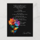 This reception details card from the Petals & Pride collection sets the stage for a joyful and inclusive celebration. Against a sleek black background, radiant rainbow florals bloom in translucent layers of pink, orange, yellow, green, and blue—symbolizing unity, pride, and love. The card outlines the full reception itinerary, from welcome drinks to dinner and dancing, with elegant typography and clear formatting. Whether you're hosting at a botanical venue or a chic city space, this card helps guests feel informed and excited. Matching items available to complete your suite with pride and style.