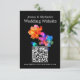 This wedding website address card from the Petals & Pride collection is a vibrant and modern way to connect guests with all your celebration details. Set against a rich black background, radiant rainbow florals bloom in translucent layers of pink, orange, yellow, green, and blue—symbolizing unity, joy, and pride. The layout features your personalized website URL and an optional QR code, giving guests instant access to your event info, RSVP form, registry links, travel tips, and more. Perfect for LGBTQ+ weddings that blend expressive design with digital ease. Matching items available to complete your suite with pride and style.