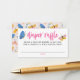 Adicione um toque doce e elegante ao seu chá de bebê com este cartão de rifa de fraldas temático de borboletas, apresentando borboletas vibrantes em tons de rosa e azul em aquarela com letras em script divertido. Este inserto encantador incentiva os convidados a trazer um pacote de fraldas de qualquer tamanho para ter a chance de ganhar um prêmio especial. Com um layout limpo e moderno que é fácil de personalizar, este design combina perfeitamente com nossos convites e decorações de chá de bebê com borboletas. Uma escolha perfeita para celebrar uma menina, este cartão de rifa de fraldas ajuda a tornar seu chá de bebê atencioso e divertido.