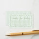 Convide convidados a construir uma biblioteca especial para a pequena com os livros "A Tini One is On the Way" para cartões de bebê. Com um fundo verde pastel, ilustração feita à mão de vidro martini, e tipografia na moda, este design complementa lindamente o tema do chá de fraldas inspirado no coquetel. Uma adição ponderada ao seu chá, esta carta encoraja os hóspedes a trazer um livro querido em vez de uma carta, criando memórias que durarão uma vida inteira.