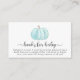 Um cartão de convite para chá de bebê fofo que apresenta uma aquarela azul pastel de uma abóbora e "livros para bebê" em um roteiro de cinza mole de na moda bonito com pestanas. Personalize os livros para pedidos de bebês em uma simples tipografia de cinzas.