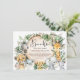 Livros temáticos de selva rústica para cartão de bebê com adorável ilustração em aquarela de animais de safari e vegetação botânica exuberante.
