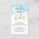 Este elegante pedido de livro para chá de bebê oferece texto em letra cursiva que aparece em brilho dourado falso sobre um fundo de aquarela azul. O cartão apresenta um poema fofo, pedindo aos convidados que tragam um livro em vez de um cartão.
