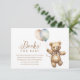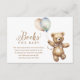 O cartão de acompanhamento dos Livros para Chás de Bebê de Urso de Pelúcia Neutro para Bebê apresenta uma adorável ilustração em aquarela de um urso de pelúcia segurando balões.