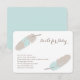 Tribal Fetaher Livros de Chá de fraldas para Cartão de Inserção de Bebê. Azul claro e Cinzas com penas de vassoura tribais. A Boêmia Bonita inspirou o design perfeito para uma festa de chá de fraldas do Boho Boy.