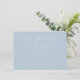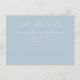 This elegant wedding enclosure card features a soft, pastel blue background with delicate cursive typography that exudes sophistication and charm. The minimalist design focuses on providing essential details in an understated yet refined manner, perfect for couples aiming to convey their special day's information with grace. Ideal for modern weddings, the serene color palette and clean layout create a calming and inviting tone, ensuring guests feel warmly welcomed into your celebration. Customize this design effortlessly to fit your unique event while maintaining its timeless elegance.