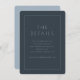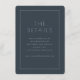 This elegant wedding enclosure card features a sophisticated and minimalist design, perfect for conveying essential details with grace. The clean typography is modern yet timeless, set against a rich navy background that exudes elegance and refinement. A simple rectangular border frames the text, adding structure without overwhelming the simplicity of the layout. Ideal for couples aiming to maintain an understated yet chic aesthetic at their special event, this card ensures all guests have access to important information while complementing the overall wedding theme seamlessly.