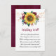 Estes cartões de poço de casamento apresentam girassóis de cor d'água e rosas burgundy com luzes de cordas. Estes cartões fazem parte de uma coleção que inclui artigos de papelaria e presentes de casamento. Por favor, veja a página de coleta ou visite nossa loja para ver a gama de produtos de cheio que você pode personalizar completamente para o seu dia de casamento.