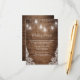 Crie os perfeitos Cartões de Detalhes do Casamento com este modelo de "Cartão de Detalhes da Recepção de Casamento com Luzes Rústicas em Pote de Mason". Este design de alta qualidade é fácil de personalizar para combinar com o estilo do seu casamento, cores e tema. Você pode adicionar mais informações no verso do cartão.