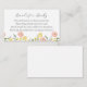 Um cartão de inserção de solicitação de livro para o chá de fraldas. Apresentando uma borda de aquarela de flores silvestres brancas com poema: "UMA PEQUENA SOLICITAÇÃO, ESPERAMOS NÃO MUITO DURO POR FAVOR TRAZER UM LIVRO EM VEZ DE UM CARTÃO QUE ELES CHERARÃO O LIVRO, BEM AMADO OU MARCA NOVO POR FAVOR ASSINE O DENTRO COM UMA MENSAGEM DE VOCÊ!"