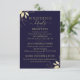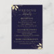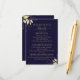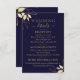 Cartão De Informações Marinho Azul e Folhagem Dourada Casamento Botânico