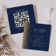 A borda esquerda deste elegante e moderno cartão de cerimônia de núpcias do casamento apresenta uma borda falsa dourada. O título aparece em um script de escrita manuscrita dourado, com texto personalizável abaixo na fonte em copperplate em um fundo azul de marinho. Carregue o código QR do seu site de casamento para substituir a imagem de amostra no verso, enquadrado pelas palavras "digitalize-me para RSVP".