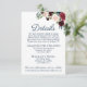 Avise seus convidados sobre detalhes adicionais de casamento com nosso marinho rústico, marsala, e detalhes de casamento de flores cor-de-rosa inserem cartões. O texto é completamente personalizável - se você precisar alterar a fonte, a cor da fonte, o tamanho ou o posicionamento das caixas de texto, basta clicar no botão "Clique para personalizar mais" para alterar esses itens. Certifique-se de verificar nossa grande seleção de itens coordenadores navegando na coleção Rustic Marinho e Marsala Floral Wedding!