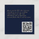 Cartão de cerimônia de casamento místico celestial personalizado com código QR apresentando o céu da meia-noite galáxia leitoso com poeira estelar, lua crescente e outros símbolos astrológicos em azul marinho e ouro. Este cartão é facilmente editável. Se precisar de ajuda para a personalização desta placa ou se precisar de mais produtos correspondentes para esta coleção, envie-me gentilmente através do Zazzle.