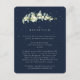 Um cartão de cerimônia plana de marinho escuro para recepções de casamento que são mantidas em um local diferente da cerimônia de casamento. O cartão apresenta um caule elegante de groselhas de neve pintadas manualmente e eucalipto na frente e uma coroa na parte de trás do cartão. Todo texto é totalmente editável e os pontos dispersos na frente e atrás podem ser excluídos antes de fazer o pedido, se preferir. Esta placa está disponível com designs botânicos do alternativo, em formato paisagem e em cores diferentes. Consulte a Coleção na minha loja para ver todas as opções e itens de coordenação.