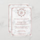 Cartão de cerimônia elegante, com um delicado design florescente e um bismillah na caligrafia árabe, sobre fundo de mármore branco.