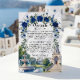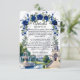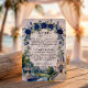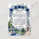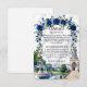 Defina o tom do seu casamento formal em uma propriedade com este elegante cartão de enclosure, apresentando uma ilustração arquitetônica romântica e flores aquareladas exuberantes. Este design apresenta uma composição sofisticada ideal para casamentos de luxo tradicionais. O fundo utiliza uma textura de mármore branco falso impresso (efeito digital) para fornecer uma base limpa e sofisticada. A obra de arte mostra um grandioso salão neoclássico com uma cúpula e escadas curvas, ancorado por uma fonte de água de pedra em níveis e dois cisnes brancos graciosos deslizando em um lago. A cena é emoldurada por um arco floral em aquarela de rosas azuis reais e folhagens esmeralda. Esta é uma imagem impressa plana com efeito de mármore falso, não pedra real ou papel texturizado.