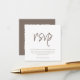 Procurando o cartão de RSVP perfeito para o seu casamento? Não procure mais! Nosso cartão de RSVP moderno e personalizável apresenta uma tipografia elegante que certamente impressionará seus convidados. Com um fundo marrom e branco, você pode facilmente incluir seu próprio texto personalizado para torná-lo verdadeiramente único. No verso, crie um novo código QR que se vincula diretamente ao site do seu casamento para fácil acesso e conveniência. Vá para a opção "personalizar", adicione a URL do seu site de casamento na área fornecida e um código QR será gerado no design apenas para você. Encomende agora e deixe as respostas começarem a chegar!