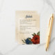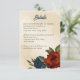 Cartão único de cerimônia de núpcias com laranja romântico queimado e flores azuis marinhos e folhas verdes. PARA MAIS PRODUTOS CORRESPONDENTES, clique na coleção acima ou entre em contato comigo.