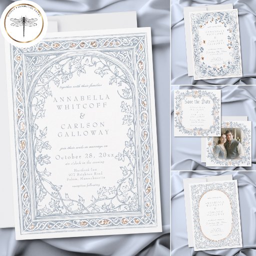 Cartão De Informações Medieval Fantasy Frame Blue Gold Etching Wedding