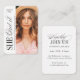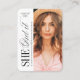 Simple mini size she did it graduation announcement and invitation features elegant typography design with timeless serif font and classic calligraphy with photos, additional grad party information on the back, modern and classic.