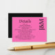 Cartão De Informações Minimalist Hot Pink Magenta Enclosure Details Card