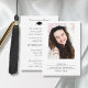 Personalize this modern photo grad party enclosure card front and back with your own text and photo. Features a minimalist design of a single photo on the front with stylized dark gray text that allows the photo to pop. Ample space on the back formatted to further personalize with your own party details. Your choice of sizes. Photo credit: adapted images from Pexels.com by Maryia Plashchynskay