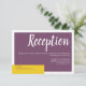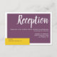 Placa de gabinete de recepção de casamento minimalista e contemporânea com um layout moderno em cinzas e roxo. A palavra Recepções é apresentada numa letra branca em negrito sobre uma tela plana roxa, enquanto os detalhes da recepção são escritos numa letra branca moderna. A parte traseira do cartão é personalizável com as iniciais da noiva e do noivo e seu texto de informações opcional (edite ou exclua o texto de amostra). Edite facilmente os campos de modelo para adicionar suas informações de recepção. Parte da coleção do "casamento roxo e amarelo moderno contemporâneo", este item também está disponível no Teal Green, Purple e Blue; mistura diferentes cores para um convite de casamento único. Para mais personalização, alterações de cor ou pedidos personalizados, sinta-se à vontade para entrar em contato comigo em acherryonthecake@hotmail.com (aguarde 1 a 2 dias úteis).