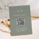 Cartão De Informações Mínimo e Chic | Sage Green Código QR Casamento