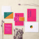 Coleção de casamento colorida e vibrante com tons brilhantes cor-de-rosa e laranja. Misturar cores e combinar