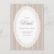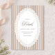 Elegant wedding details card featuring classic mocha brown French stripes and a delicate scalloped lace frame for a refined vintage look. Designed in a soft neutral mocha palette, this card is perfect for sharing important wedding information in a clean, timeless format. A beautiful coordinating piece for neutral wedding stationery suites, farmhouse elegant celebrations, and classic romantic wedding themes, with a minimalist matching back for a polished, cohesive presentation.