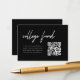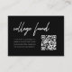 Modern Black Graduation College Fund QR Code Enclosure Card. A minimalistic and elegant, black and white "college fund" enclosure card, designed with script lettering. Request friends and family to donate using the QR code on the right.