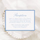 This reception enclosure card features “Reception” in elegant light blue calligraphy with classic serif lettering for your reception details below. A soft blue border frames the card, creating an airy, refined look that feels clean and timeless. The balanced layout offers a graceful way to present your reception information, making this enclosure well-suited for summer weddings, coastal venues, and classic celebrations.